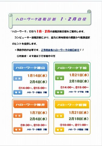 ハローワーク適職診断日程 *拡大参照 クリック⇒適職診断1・2月日程