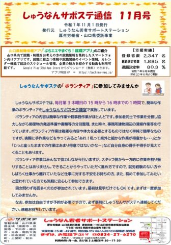 しゅうなん若者サポートステーション > お知らせ > 💁🔊『しゅうなんサポステ通信 11月号』を発行しました。🥰