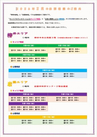 しゅうなん若者サポートステーション > お知らせ > 😉😄2026年2月 柳井地域・岩国地域での出張相談のご案内🥰