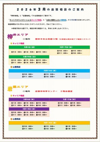 「柳井地域」と「岩国地域」で行う出張相談のご案内です。